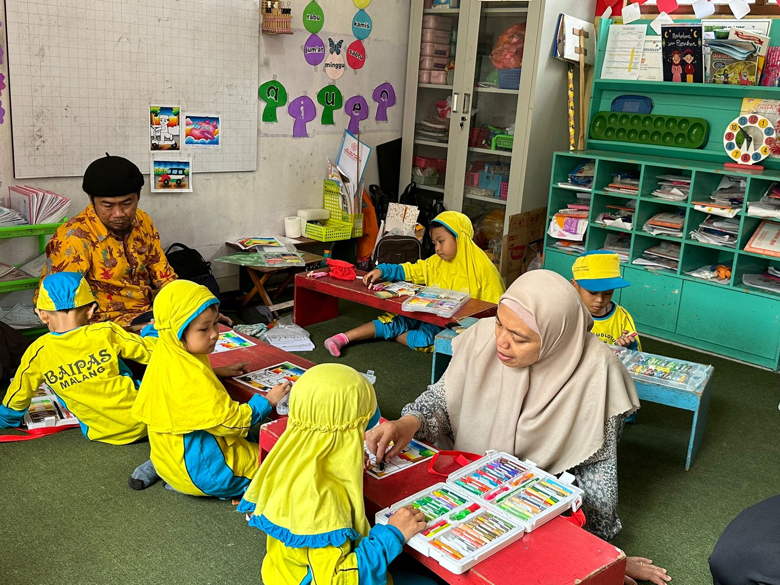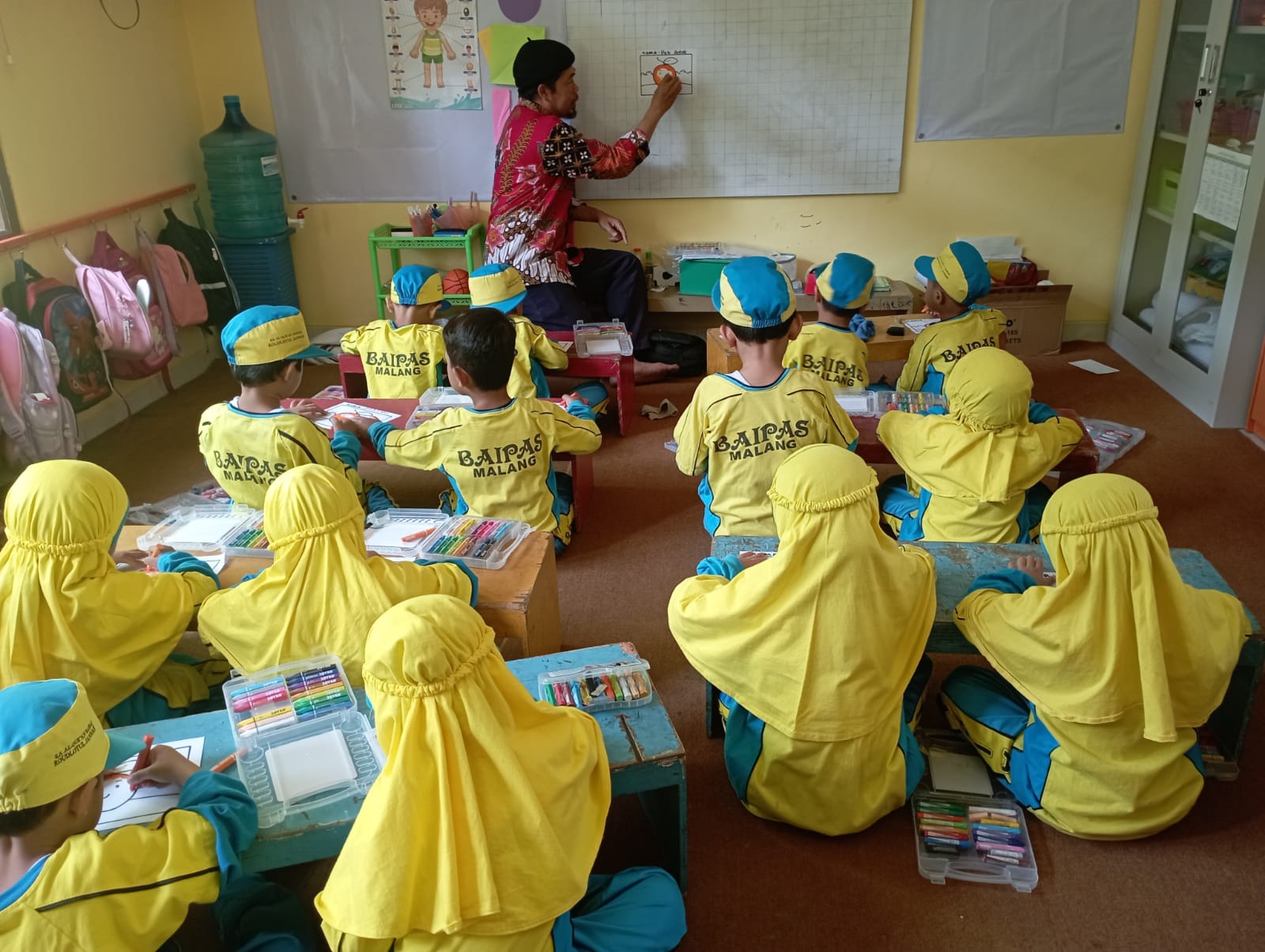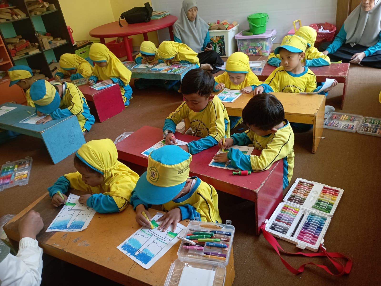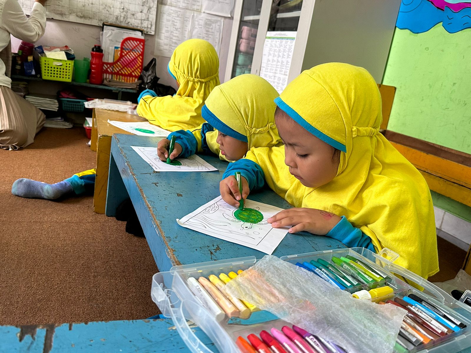 Ekstrakurikuler Mewarnai mengasah kreativitas dan imajinasi siswa melalui permainan warna. Kegiatan ini melatih keterampilan motorik halus, ketelitian, dan kesabaran, sekaligus memberi ruang bagi anak untuk mengekspresikan diri. Suasana belajar dibuat menyenangkan agar anak bebas berkreasi dan percaya diri dengan hasil karyanya.
