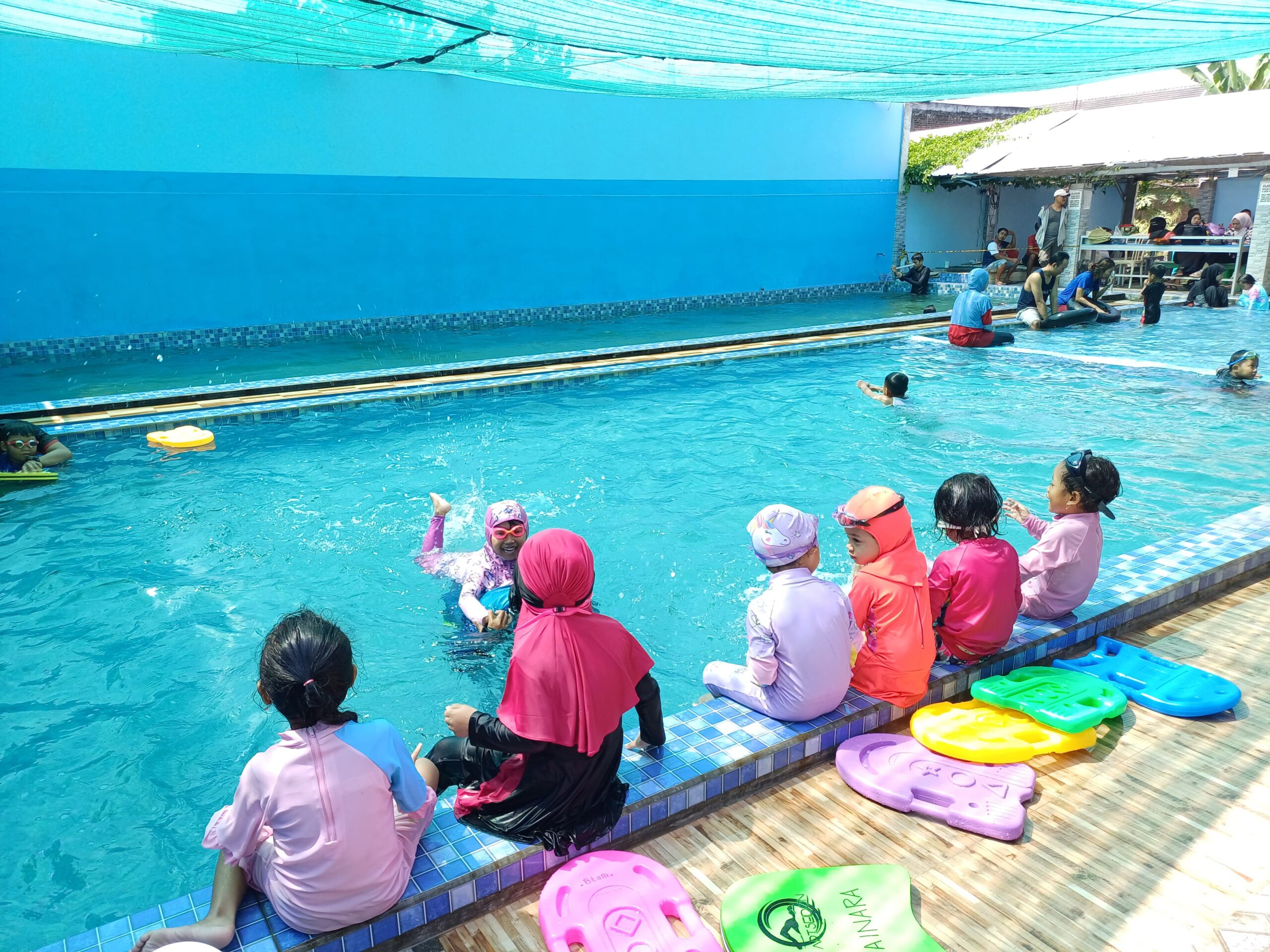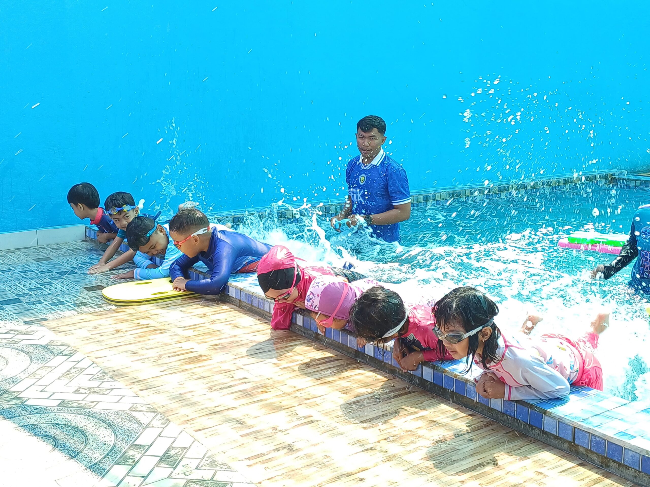 kstrakurikuler Renang membantu siswa menguasai teknik dasar berenang sekaligus meningkatkan kebugaran tubuh. Kegiatan ini melatih keberanian, koordinasi gerak, dan ketahanan fisik, serta menjadi keterampilan penting untuk keselamatan di air. Latihan dilakukan di bawah bimbingan instruktur berpengalaman dengan pengawasan ketat demi keamanan dan kenyamanan siswa.