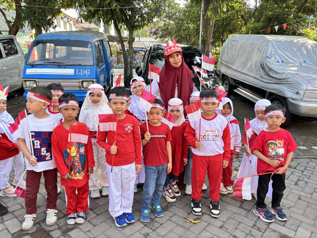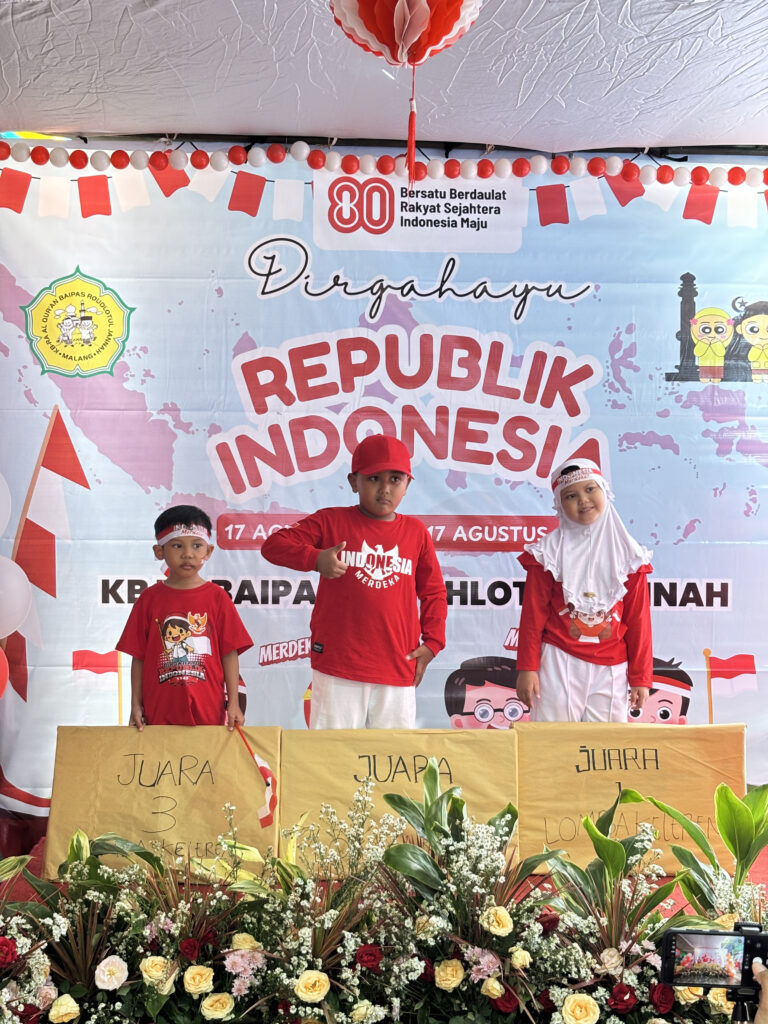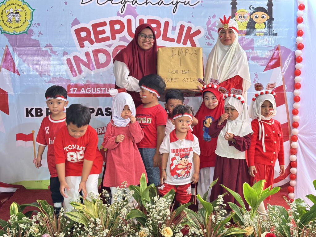KB-RA BAIPAS Roudlotul Jannah memeriahkan HUT RI ke-80 dengan berbagai kegiatan edukatif dan penuh keceriaan. Kegiatan diawali dengan lomba menghias kelas yang melibatkan wali murid, dilanjutkan dengan aneka lomba anak seperti balap kelereng, estafet bola, dan estafet gelas.