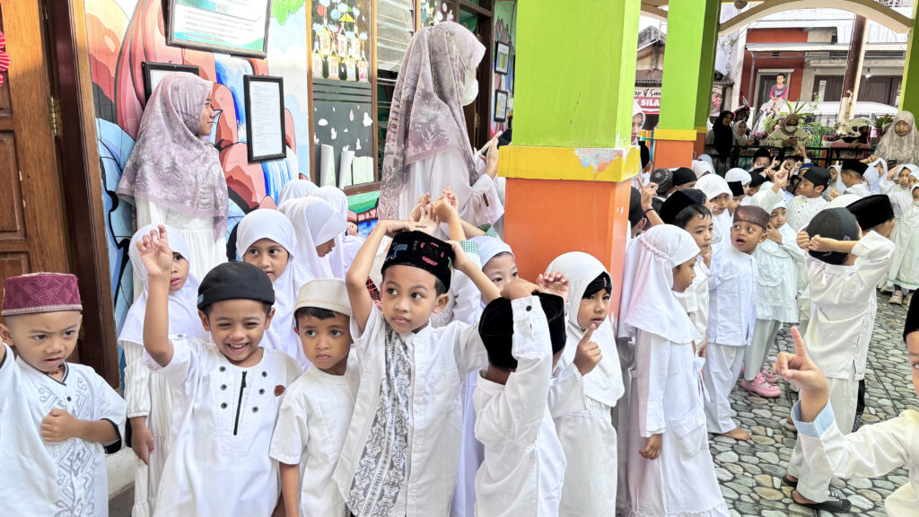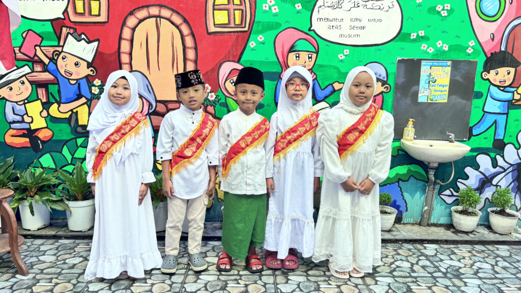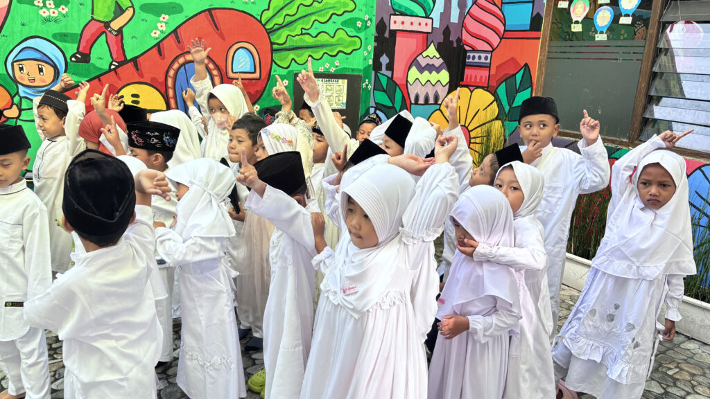 Sementara itu, santri KB mengikuti kegiatan di sekolah berupa menonton film bernuansa Islami dan lomba membaca Surat Al-Fatihah, sebagai upaya menumbuhkan kecintaan terhadap Al-Qur’an dan membiasakan adab Islami sejak dini.
