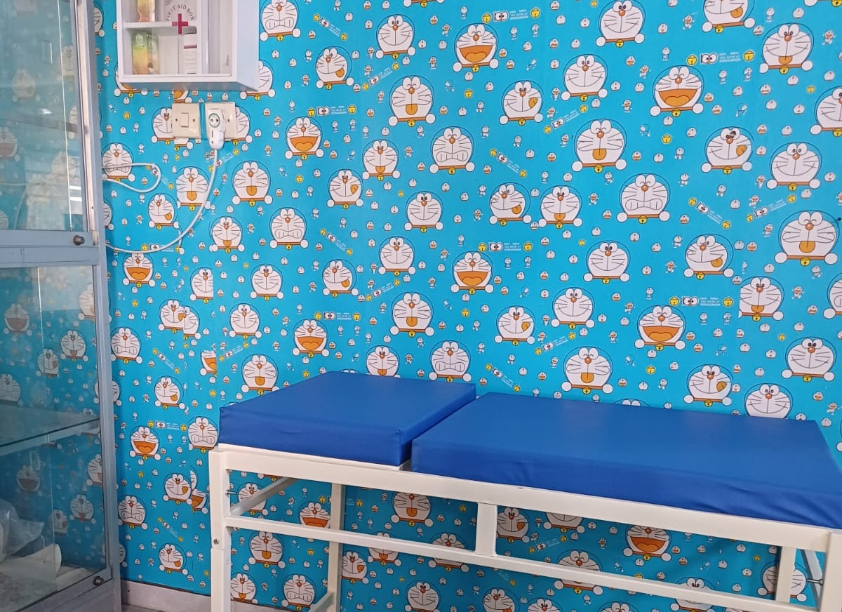 Ruang kesehatan untuk penanganan pertama, dilengkapi perlengkapan medis dasar dan fasilitas kenyamanan anak.